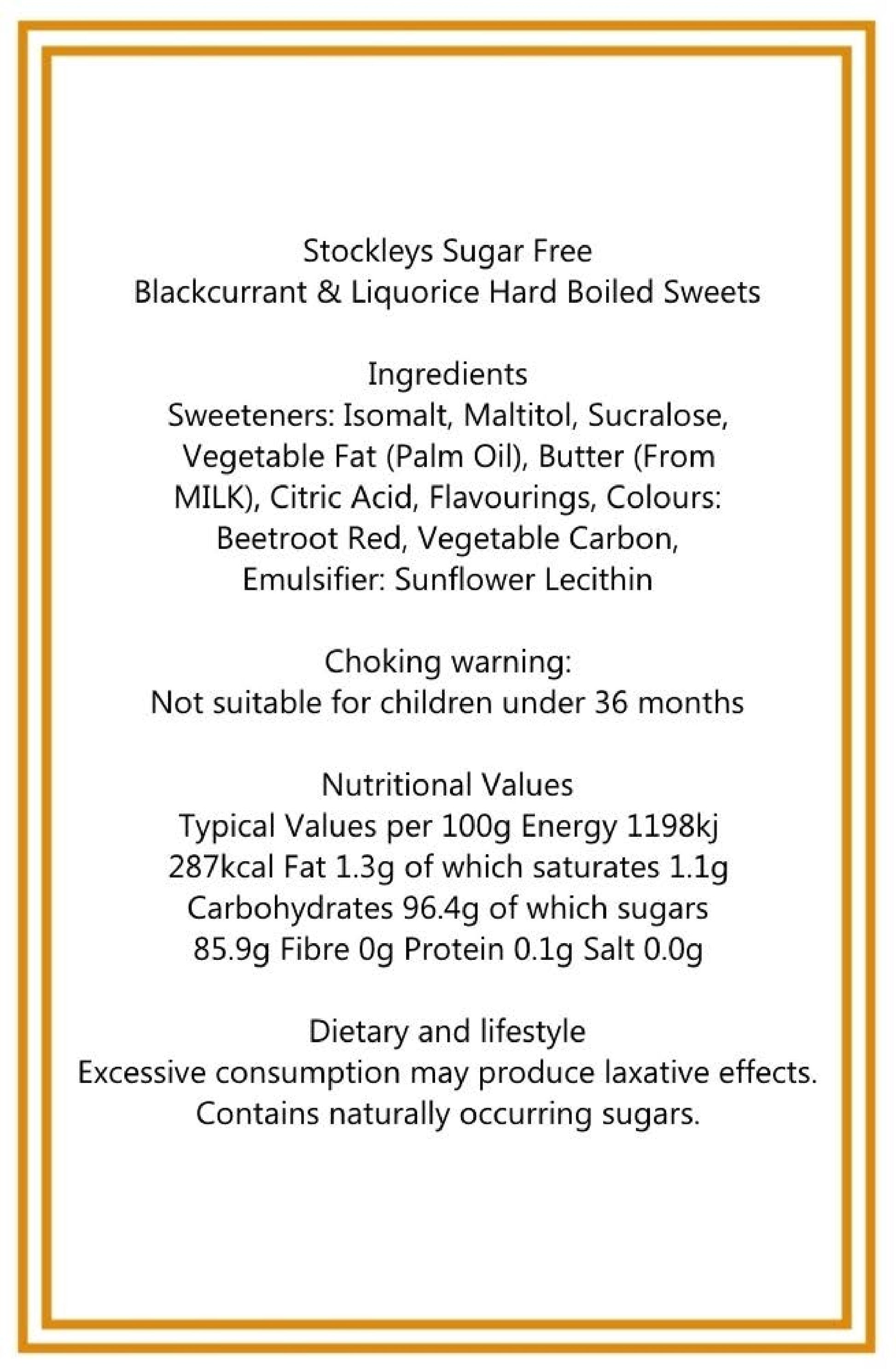 Sachet de 300 g de cassis et de réglisse Stockleys sans sucre