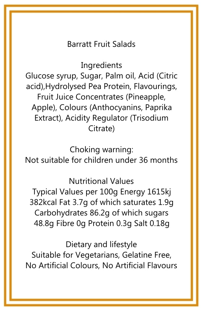 Bonbons rétro classiques, Black Jacks et salades de fruits. Certaines personnes aiment simplement les salades de fruits. Eh bien, vous pouvez toujours partager les black jacks !