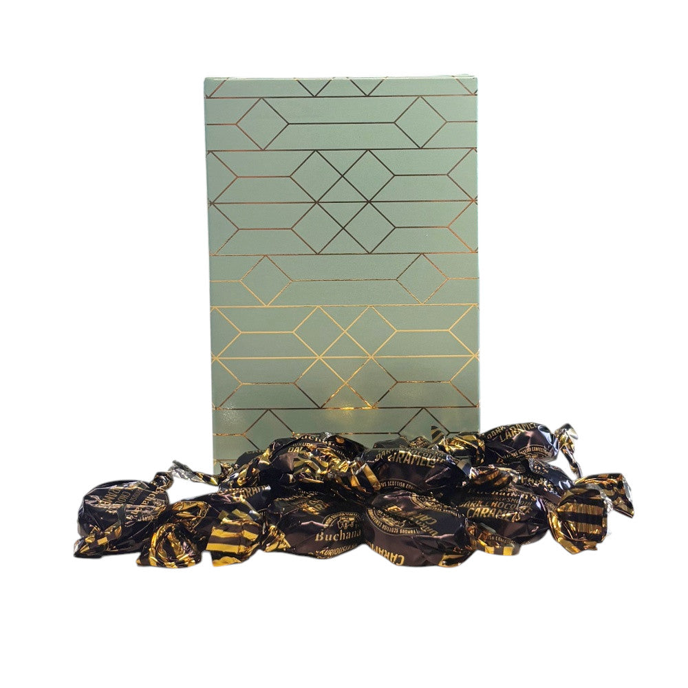 250g Rectangular Pattern Box of Buchanan's Chocolate Caramel Toffees