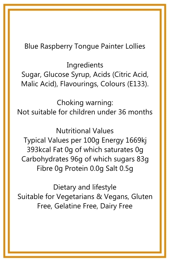 Indulge in the vibrant and playful world of Vidal Blue Raspberry Tongue Painter Lollies! This bulk pack of 50 large lollies is perfect for satisfying your sweet tooth and adding a touch of fun to any occasion. Each lollipop is individually wrapped, ensuring freshness and hygiene, and boasts a delightful sour and sweet blue raspberry flavor that will leave your tongue a vibrant shade of blue. These lollies are a hit with kids and adults alike, making them ideal for party favors, birthday gifts, Halloween treats, Christmas stocking stuffers, and more. Experience the joy of tongue painting with these delicious and entertaining lollies!